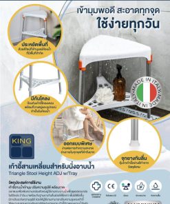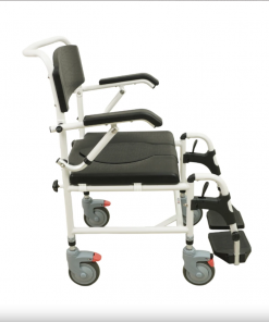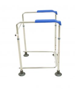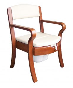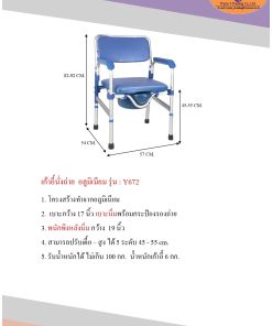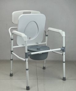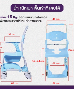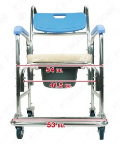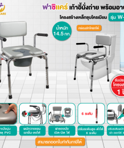 เก้าอี้นั่งถ่ายพร้อมอาบน้ำ รุ่น W-15 โครงสร้างเหล็กชุบโครเมียม เบาะสีเทา มีพนักพิงหลังและพนักวางแขน